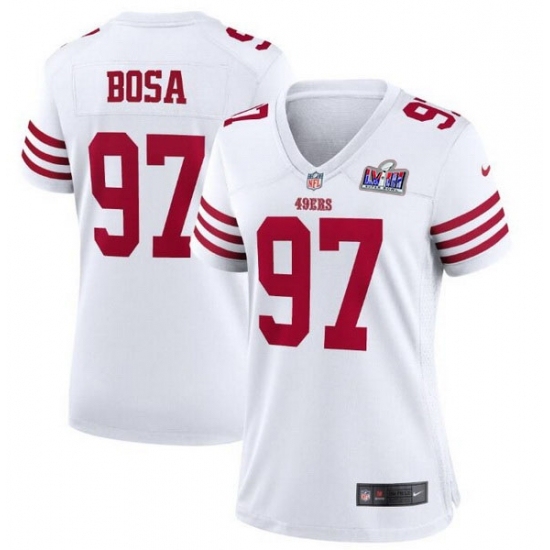 >Women's San Francisco 49ers #97 Nick Bosa White 2023 F U S E Vapor Untouchable Limited Stitched Football 2024 Super Bowl LVIII Jersey