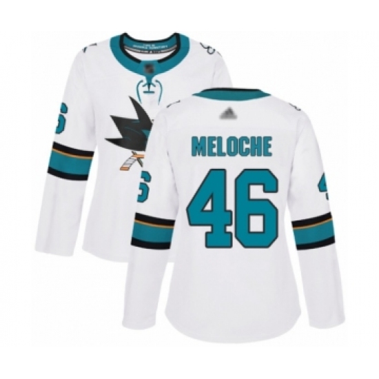 Women's San Jose Sharks #46 Nicolas Meloche Authentic White Away Hockey Jersey