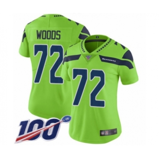 >Women's Seattle Seahawks #72 Al Woods Limited Green Rush Vapor Untouchable 100th Season Football Jersey