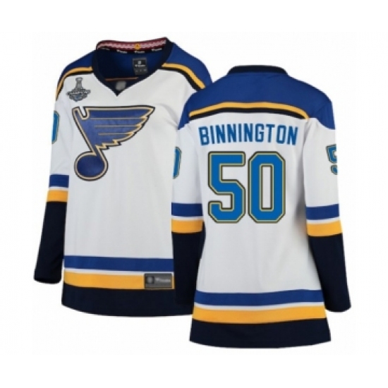 Women's St. Louis Blues #50 Jordan Binnington Authentic White Away 2019 Stanley Cup Champions Hockey Jersey