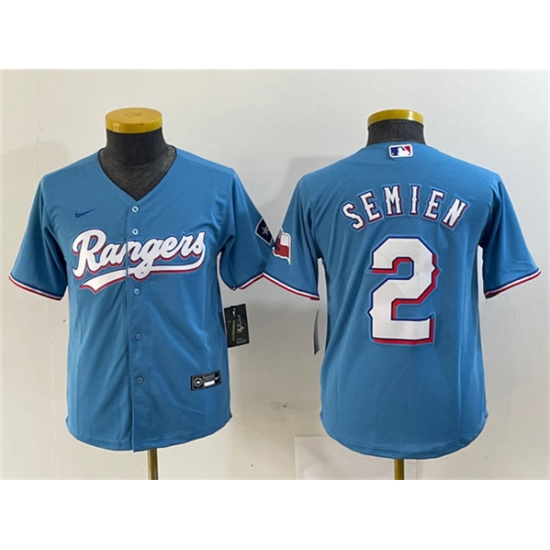 >Women's Texas Rangers #2 Marcus Semien Blue With Stitched Baseball Jersey(Run Small)