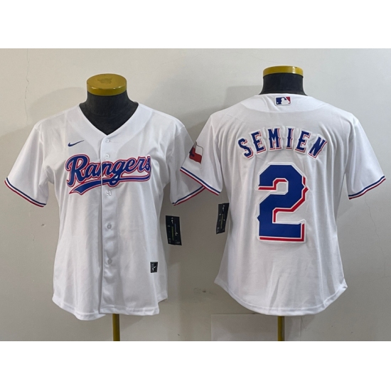 Women's Texas Rangers #2 Marcus Semien White 2024 Gold Collection Limited Cool Base Jersey