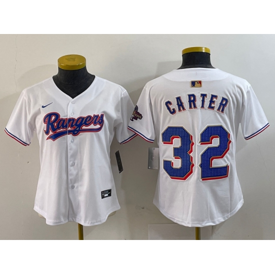 Women's Texas Rangers #32 Evan Carter White 2024 Gold Collection Limited Cool Base Jersey