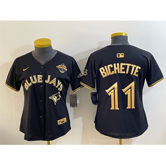 >Women's Toronto Blue Jays #11 Bo Bichette Black Gold 2025 American League Champions Limited Stitched Baseball Jersey(Run Small)