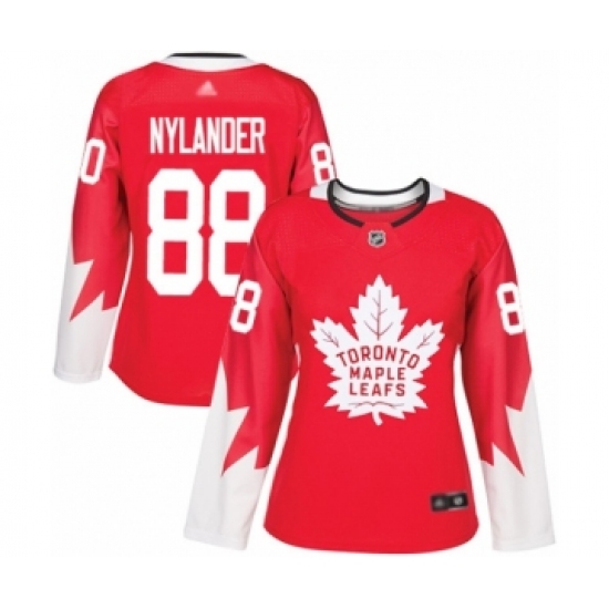 Women's Toronto Maple Leafs #88 William Nylander Authentic Red Alternate Hockey Jersey