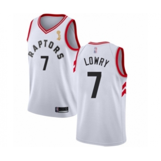 >Women's Toronto Raptors #7 Kyle Lowry Swingman White 2019 Basketball Finals Champions Jersey - Association Edition