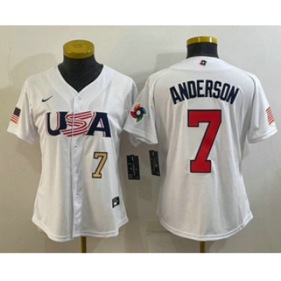 >Women's USA Baseball #7 Tim Anderson Number 2023 White World Classic Stitched Jersey