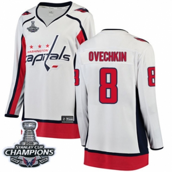 Women's Washington Capitals #8 Alex Ovechkin Fanatics Branded White Away Breakaway 2018 Stanley Cup Final Champions NHL Jersey