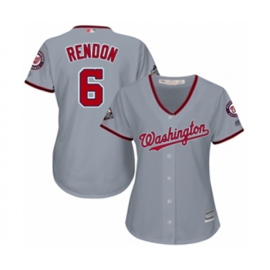 Women's Washington Nationals #6 Anthony Rendon Authentic Grey Road Cool Base 2019 World Series Bound Baseball Jersey