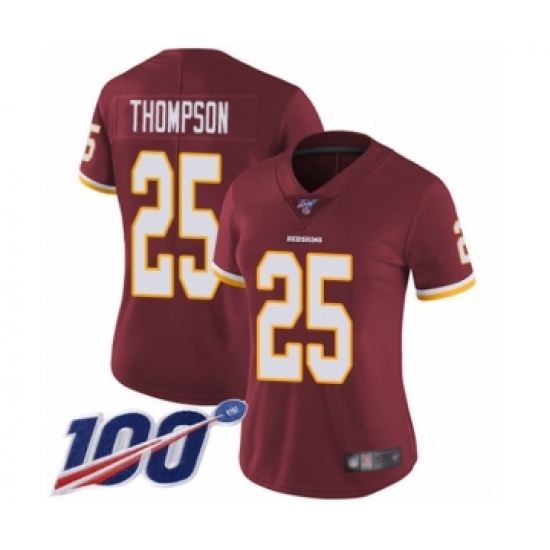 >Women's Washington Redskins #25 Chris Thompson Burgundy Red Team Color Vapor Untouchable Limited Player 100th Season Football Jersey