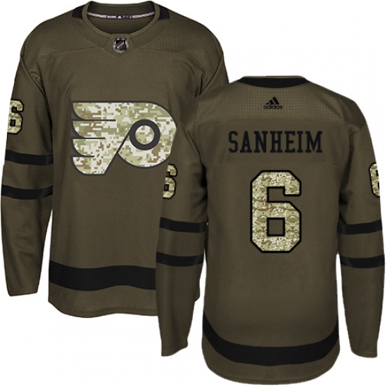 Home>NHL>Philadelphia Flyers>Travis Sanheim>Youth Adidas Philadelphia Flyers #6 Travis Sanheim Authentic Green Salute to Service NHL Jersey