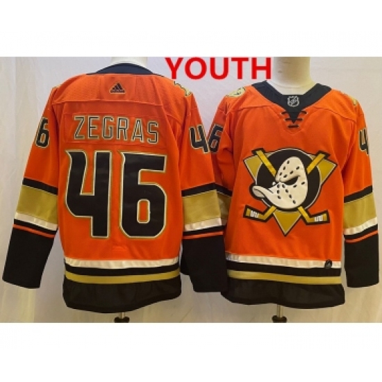 >Youth Anaheim Ducks #46 Trevor Zegras Orange Authentic Adidas Jersey
