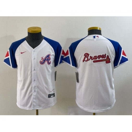 >Youth Atlanta Braves Big Logo White 2023 City Connect Cool Base Stitched Jersey
