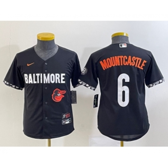 Youth Baltimore Orioles #6 Ryan Mountcastle Black 2023 City Connect Cool Base Stitched Jersey 1