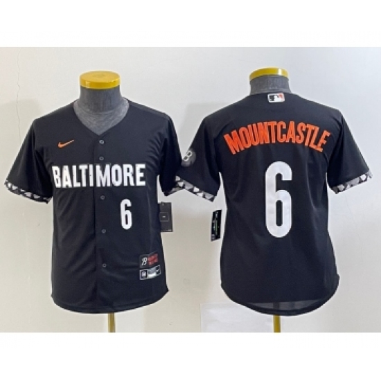 >Youth Baltimore Orioles #6 Ryan Mountcastle Number Black 2023 City Connect Cool Base Stitched Jersey 1