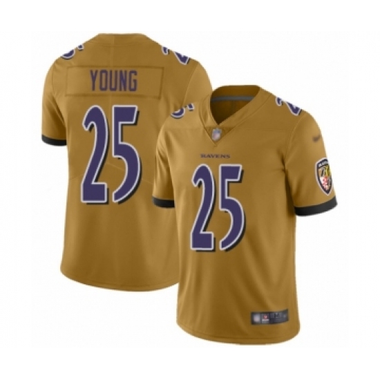 >Youth Baltimore Ravens #25 Tavon Young Limited Gold Inverted Legend Football Jersey
