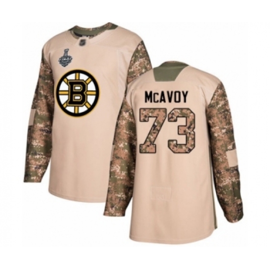 Men's Boston Bruins #73 Charlie McAvoy Authentic Camo Veterans Day Practice 2019 Stanley Cup Final Bound Hockey Jersey