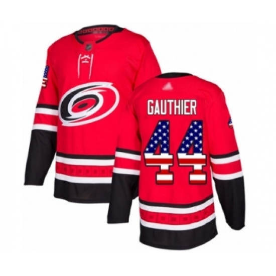 >Youth Carolina Hurricanes #44 Julien Gauthier Authentic Red USA Flag Fashion Hockey Jersey
