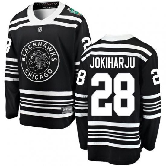 >Youth Chicago Blackhawks #28 Henri Jokiharju Black 2019 Winter Classic Fanatics Branded Breakaway NHL Jersey
