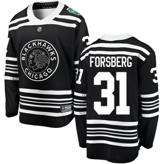 Men's Chicago Blackhawks #31 Anton Forsberg Black 2019 Winter Classic Fanatics Branded Breakaway NHL Jersey