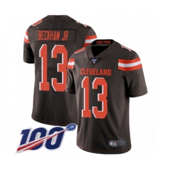 >Youth Cleveland Browns #13 Odell Beckham Jr. 100th Season Brown Team Color Vapor Untouchable Limited Player Football Jersey