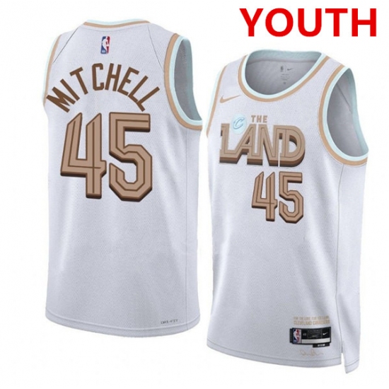 >Youth Cleveland Cavaliers #45 Donovan Mitchell White City Edition Stitched Jersey