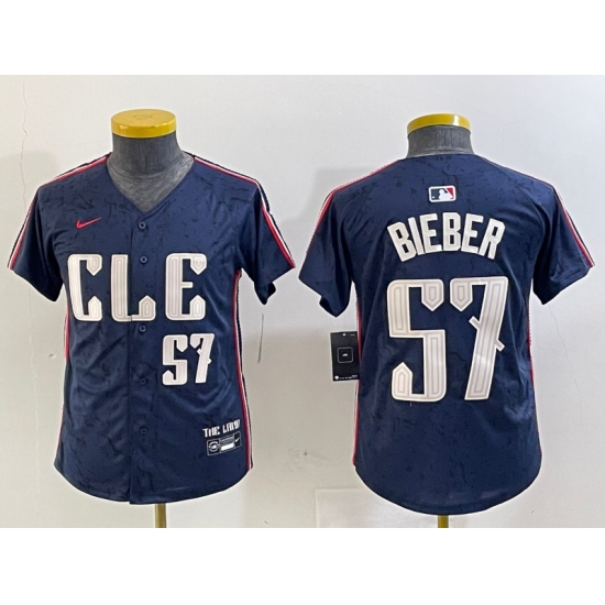 Youth Cleveland Guardians #57 Shane Bieber Number Navy 2024 City Connect Limited Stitched Jersey