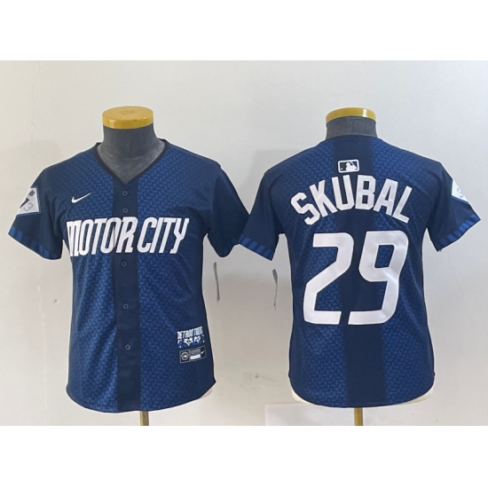 >Youth Detroit Tigers #29 Tarik Skubal Navy 2024 City Connect Cool Base Limited Stitched Jersey