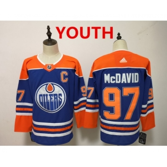 >Youth Edmonton Oilers #97 Connor McDavid Royal Blue With Orange Home Hockey Stitched NHL Jersey