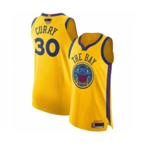 >Youth Golden State Warriors #30 Stephen Curry Swingman Gold 2019 Basketball Finals Bound Basketball Jersey - City Edition