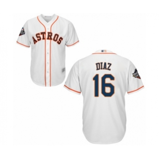 >Youth Houston Astros #16 Aledmys Diaz Authentic White Home Cool Base 2019 World Series Bound Baseball Jersey