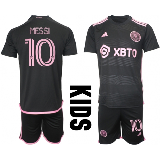 Youth Inter Miami CF #10 Lionel Messi 2025 Black Away Soccer Jersey Suit