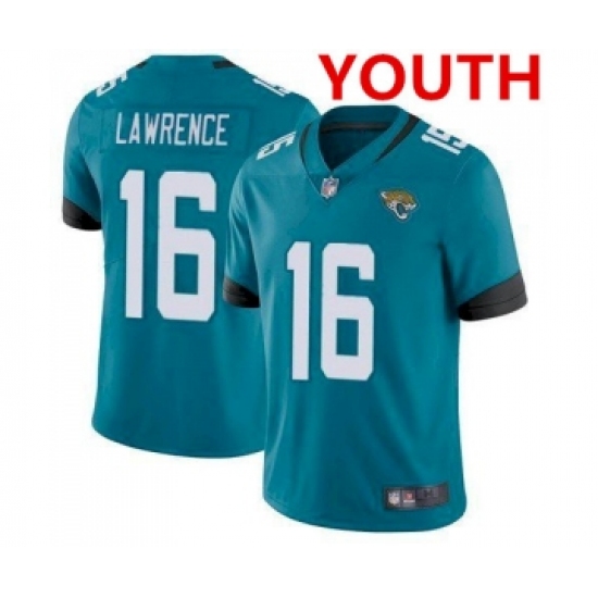 >Youth Jacksonville Jaguars #16 Trevor Lawrence 2021 Teal Vapor Untouchable Limited Stitched Jersey
