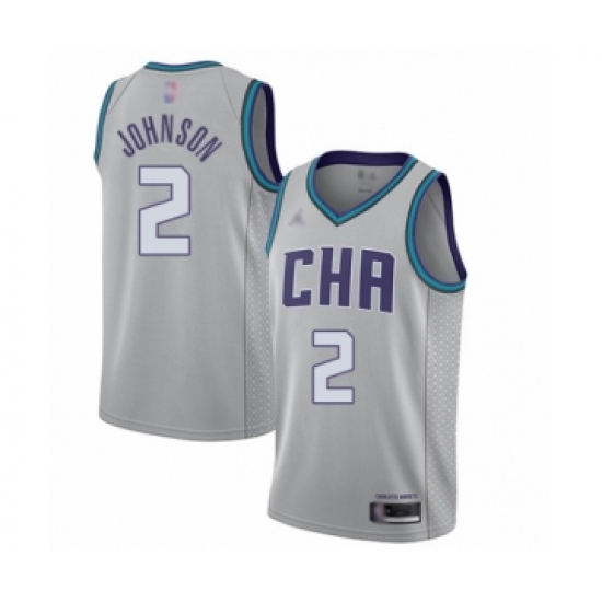 Men's Jordan Charlotte Hornets #2 Larry Johnson Swingman Gray Basketball Jersey - 2019 20 City Edition
