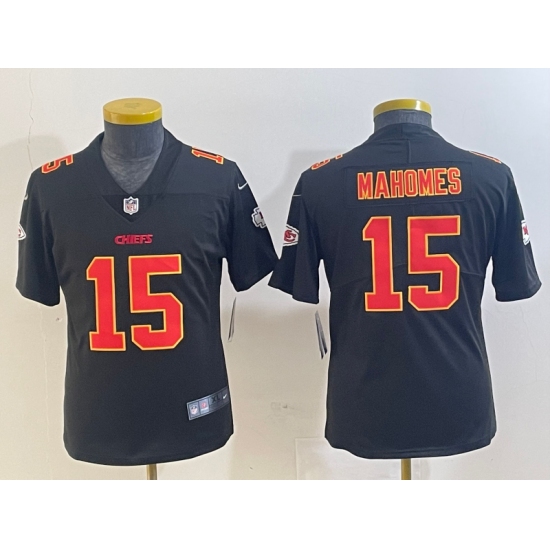 >Youth Kansas City Chiefs #15 Patrick Mahomes Black Fashion Vapor Limited Stitched Jersey