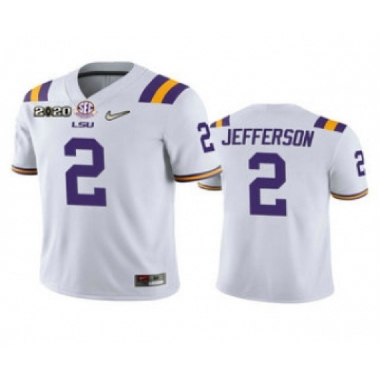 >Youth LSU Tigers #2 Justin Jefferson White 2020 National Championship Game Jersey