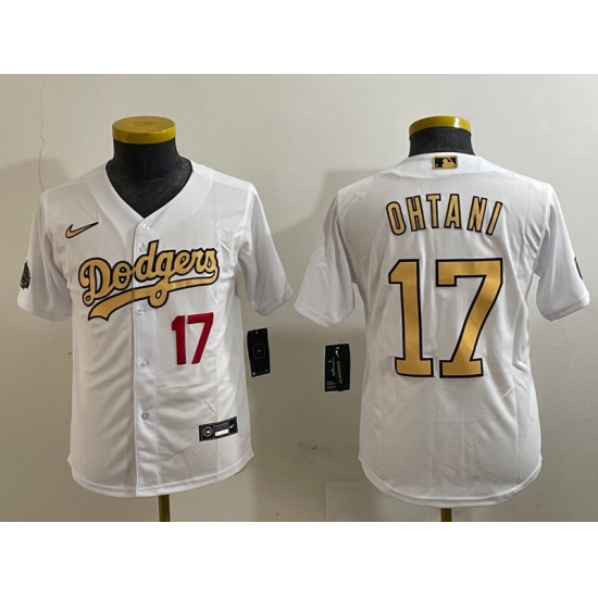 Youth Los Angeles Dodgers #17 Shohei Ohtani Number White 2022 All Star Stitched Flex Base Nike Jerseys