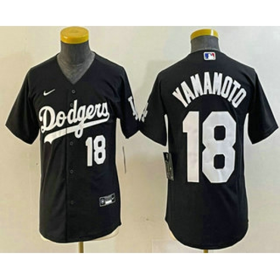 >Youth Los Angeles Dodgers #18 Yoshinobu Yamamoto Number Black Turn Back The Clock Stitched Cool Base Jersey2