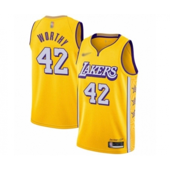 Youth Los Angeles Lakers #42 James Worthy Swingman Gold Basketball Jersey - 2019 20 City Edition