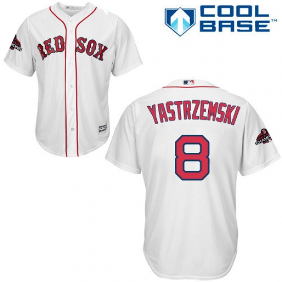 Men's Majestic Boston Red Sox #8 Carl Yastrzemski White Home Flex Base Authentic Collection 2018 World Series Champions MLB Jersey