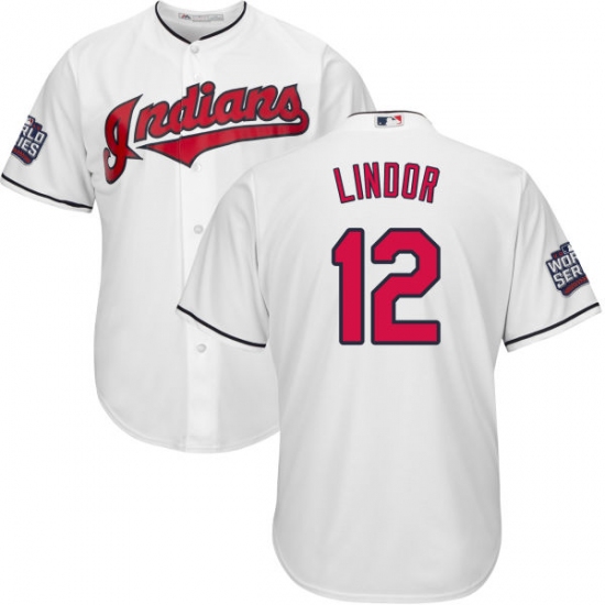 Home>MLB>Cleveland Indians>Francisco Lindor>Youth Majestic Cleveland Indians #12 Francisco Lindor Authentic White Home 2016 World Series Bound Cool Base MLB Jersey