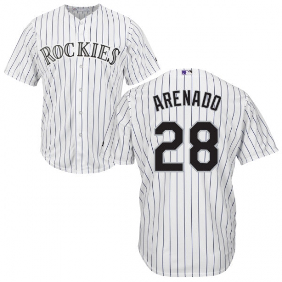 Home>MLB>Colorado Rockies>Nolan Arenado>Youth Majestic Colorado Rockies #28 Nolan Arenado Replica White Home Cool Base MLB Jersey