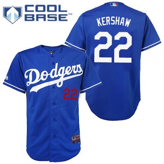 Youth Majestic Los Angeles Dodgers #22 Clayton Kershaw Replica Royal Blue Cool Base MLB Jersey