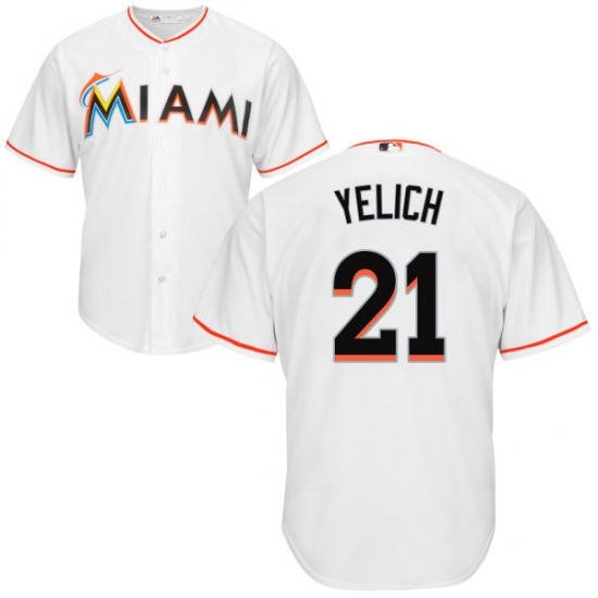 Home>MLB>Miami Marlins>Christian Yelich>Youth Majestic Miami Marlins #21 Christian Yelich Authentic White Home Cool Base MLB Jersey