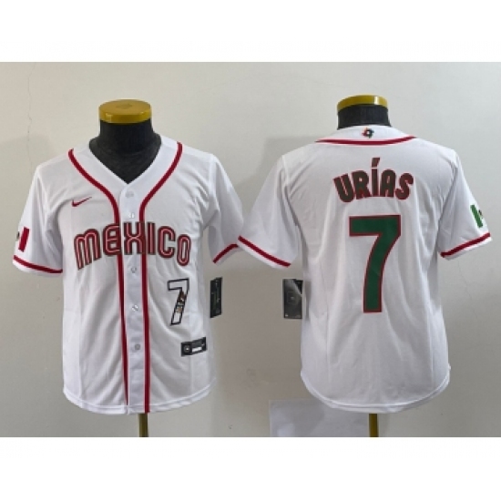 >Youth Mexico Baseball #7 Julio Urias Number 2023 Red World Baseball Classic Stitched Jersey2