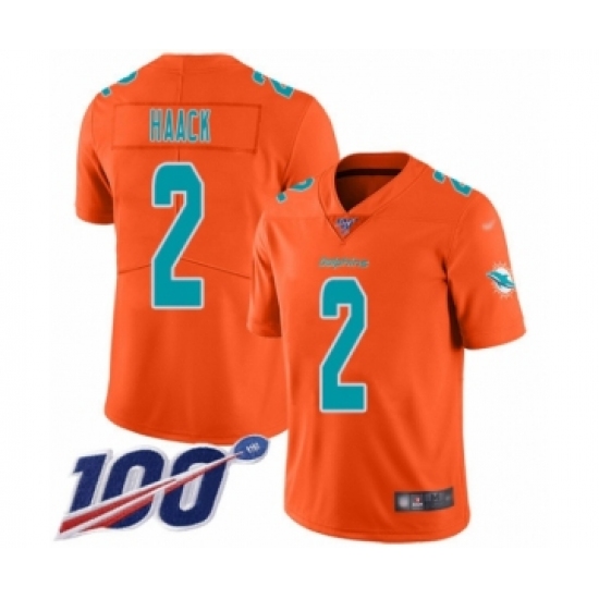 >Youth Miami Dolphins #2 Matt Haack Limited Orange Inverted Legend 100th Season Football Jersey