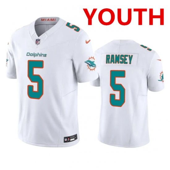 Youth Miami Dolphins #5 Jalen Ramsey White 2023 F.U.S.E Vapor Limited Stitched Football Jersey