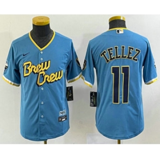Youth Milwaukee Brewers #11 Rowdy Tellez Blue 2022 City Connect Cool Base Stitched Jersey