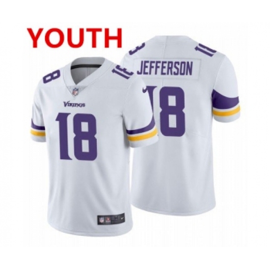 Youth Minnesota Vikings #18 Justin Jefferson 2020 White Vapor Untouchable Limited Stitched Jersey
