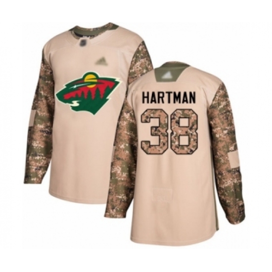 Men's Minnesota Wild #38 Ryan Hartman Authentic Camo Veterans Day Practice Hockey Jersey